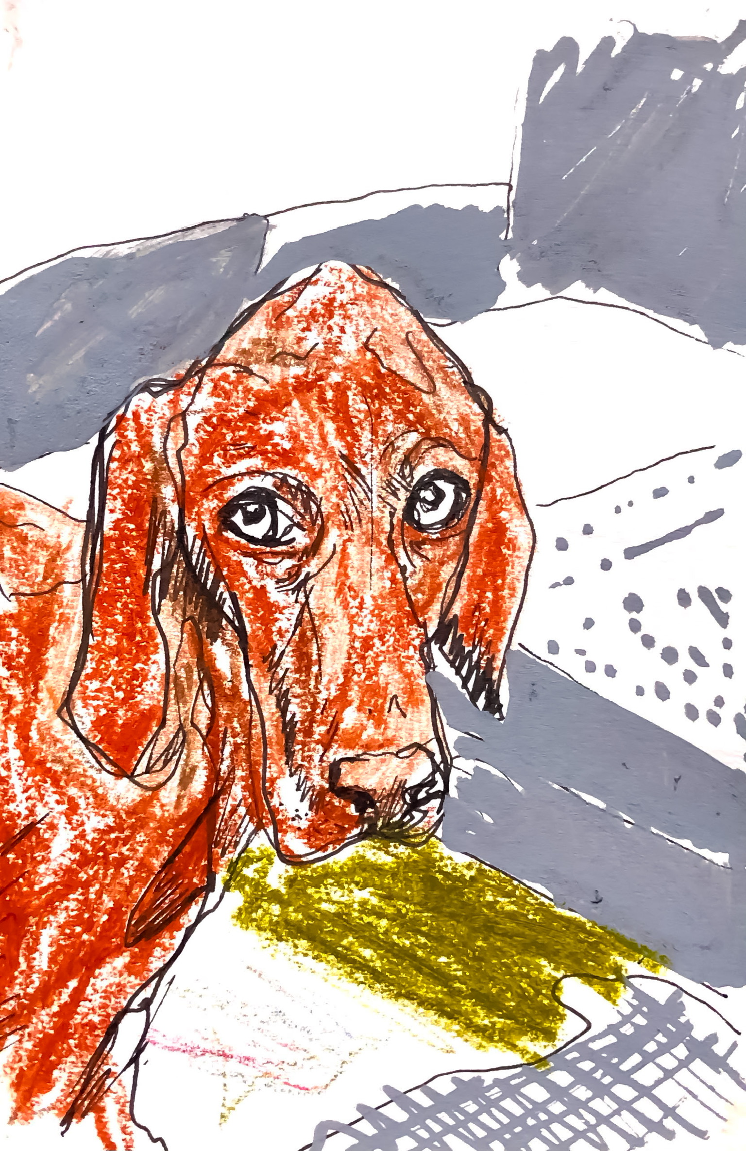 Sketchbook oil pastel drawings of memoires, moments and motifs.